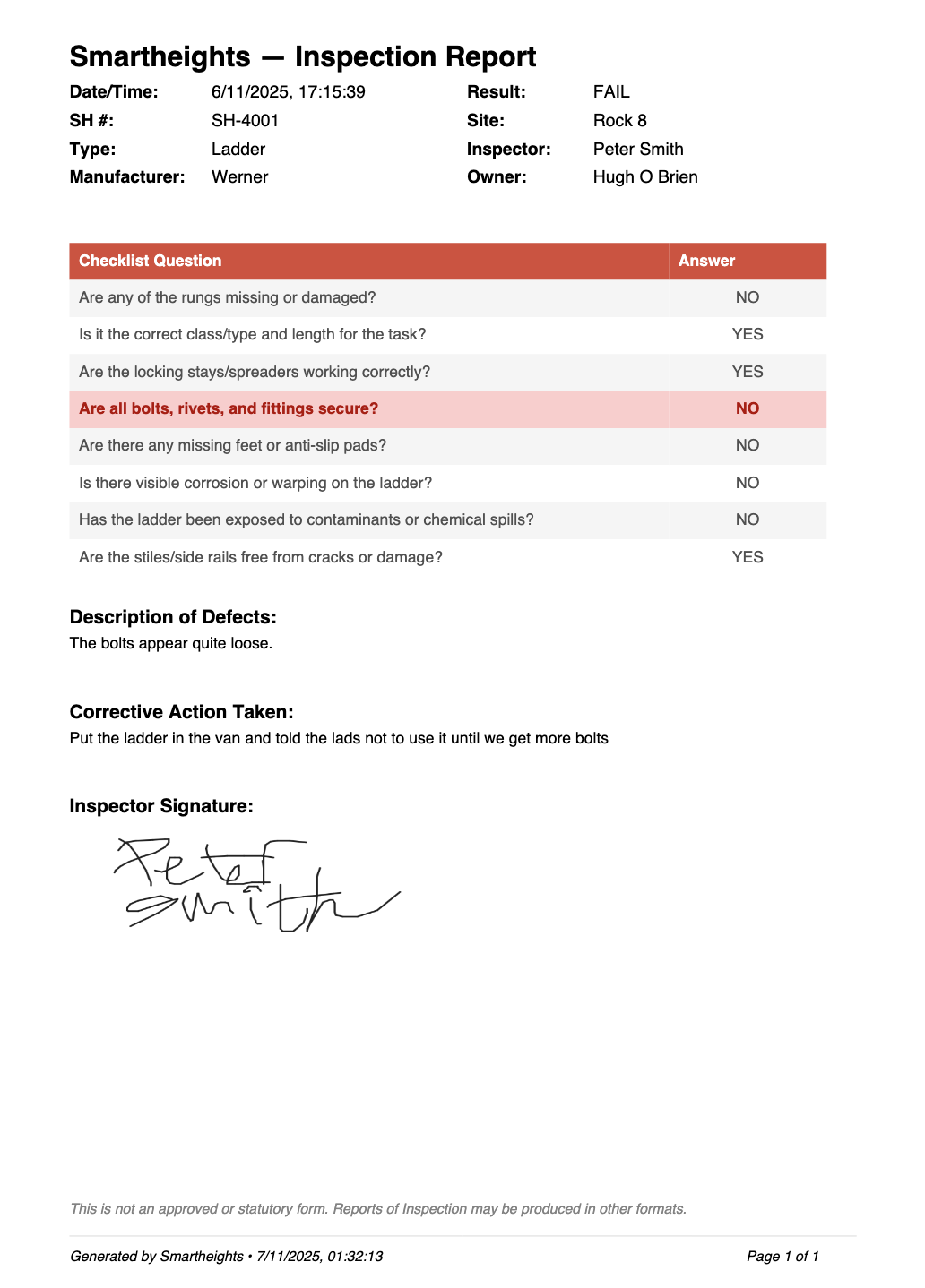 Download professional PDF reports and access complete inspection histories for equipment and sites from your dashboard — anytime, anywhere — keeping you audit and compliant ready.